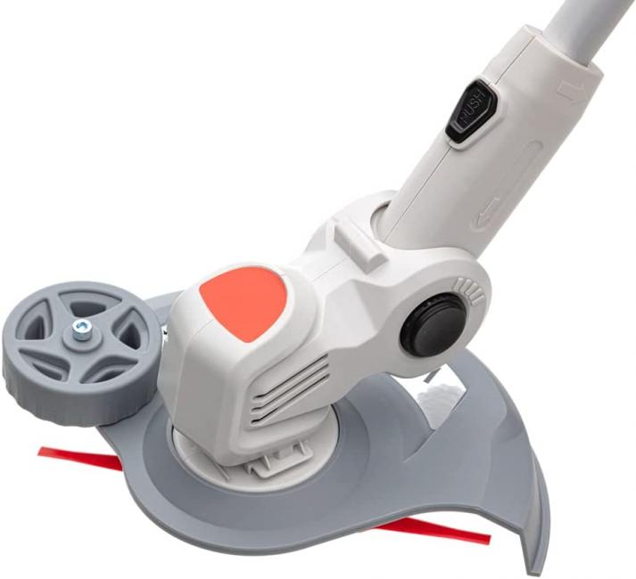 Тримерът работи с литиево-йонна батерия 20V / 2.0Ah, която осигурява стабилна и надеждна мощност. Батерията е лесна за зареждане и поддържа устройството в действие до 30 минути, което е достатъчно за почистване на малки и средни площи.