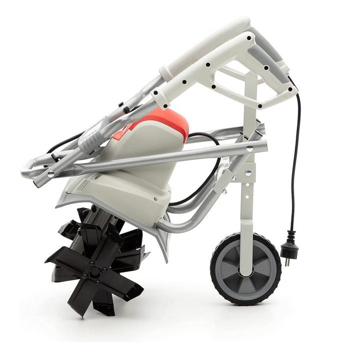 Тази фреза работи на електричество, което я прави изключително удобна за домашна употреба. Просто я включвате в стандартен контакт (може да ви потрябва удължител, ако градинката е по-далече от дома), и сте готови да започнете! Големите предимства на електрическото захранване са, че машината е много по-тиха в сравнение с бензиновите модели, не отделя никакви вредни емисии по време на работа и е лесна за стартиране – без въжета и гориво.